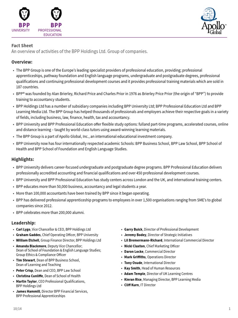 Apollo Group Bpp Fact Sheet Educational Stages Learning Example Of A Fact Sheet